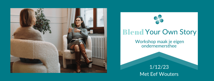 En zo geschiedde. Op 1/12/23 komt Eef haar gloednieuwe workshop ‘Blend your own story’ geven. Jij als ondernemer wordt onder vakkundige begeleiding ondersteund om jouw eigen kruidenblend samen te stellen.